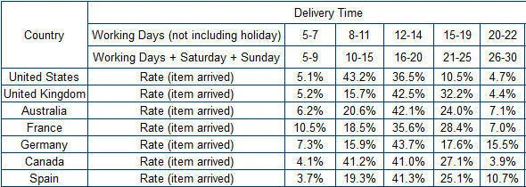 - Items are shipped by airmail, 15-25 Working days to most countries and areas -please refer to the table below for delivery time.