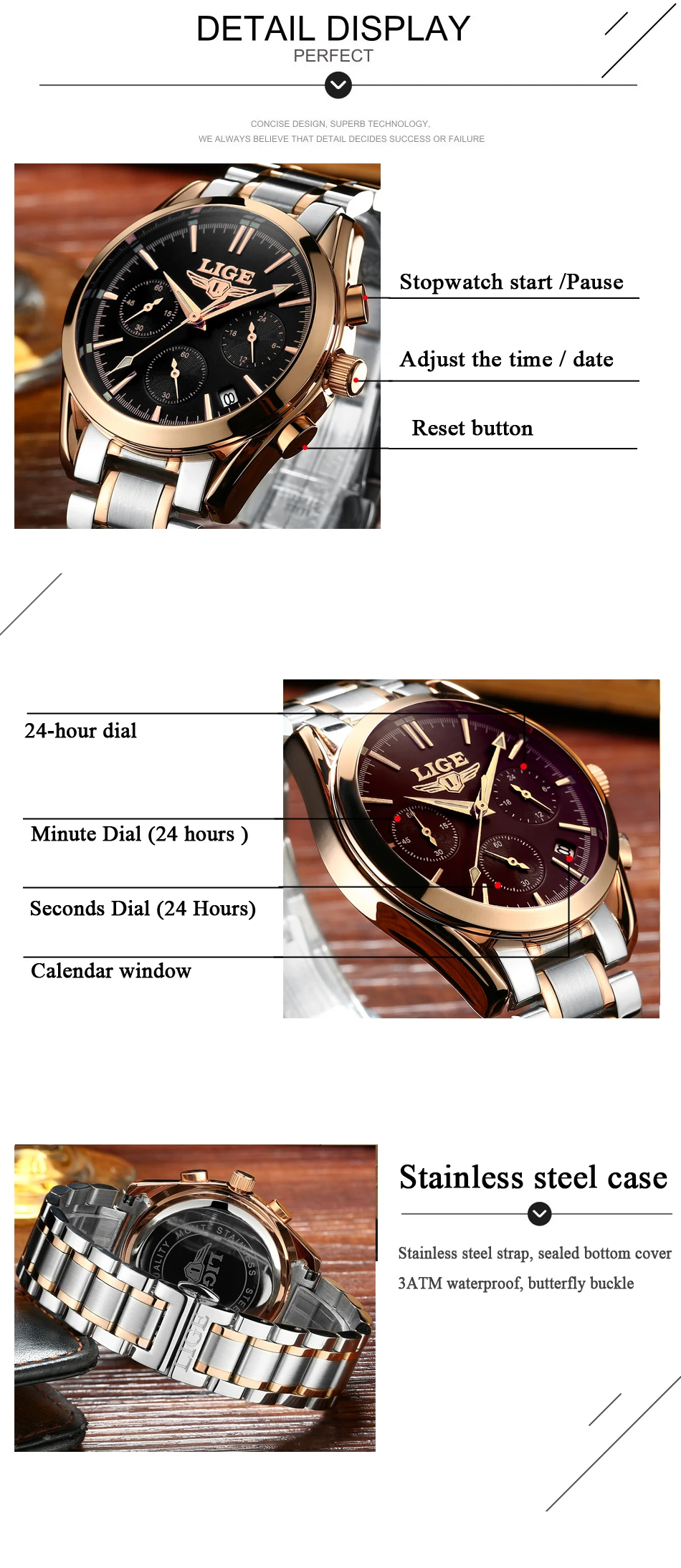 Watches Men LIGE Brand Full Steel Military Watches Men's Quartz Clock Men Business Watch Sport Waterproof WristWatch Man Relojes