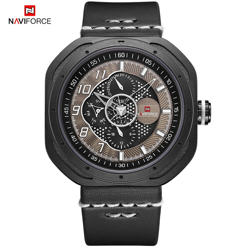 NAVIFORCE Men's Creative Military Sports Watches Leather Waterproof Wristwatch Fashion Quartz Clock Relogio Masculino Male 2019